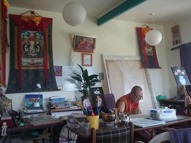 live on Waiheke Island I can only study thangka painting part time. There can be a